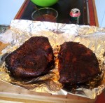 - Two Boston butts ready for pullin’ after 16 hours on the grill