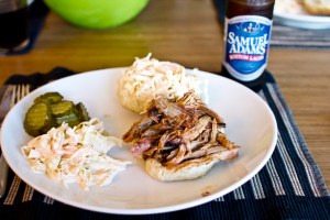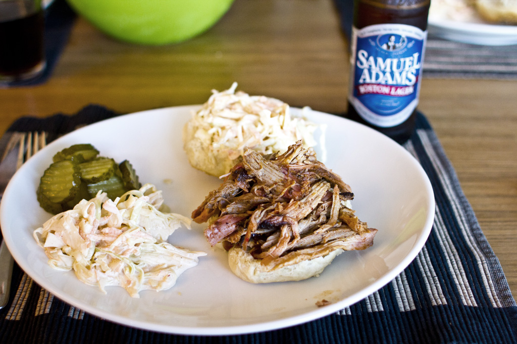 I serve this dish in a very traditional manner, on homemade hamburger buns, with a creamy coleslaw, a basic Eastern North Carolina style vinegar sauce, and some pickled gherkins. Don’t make it complicated, the meat should be the star.