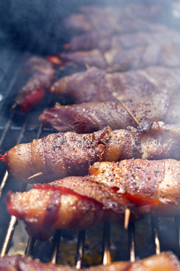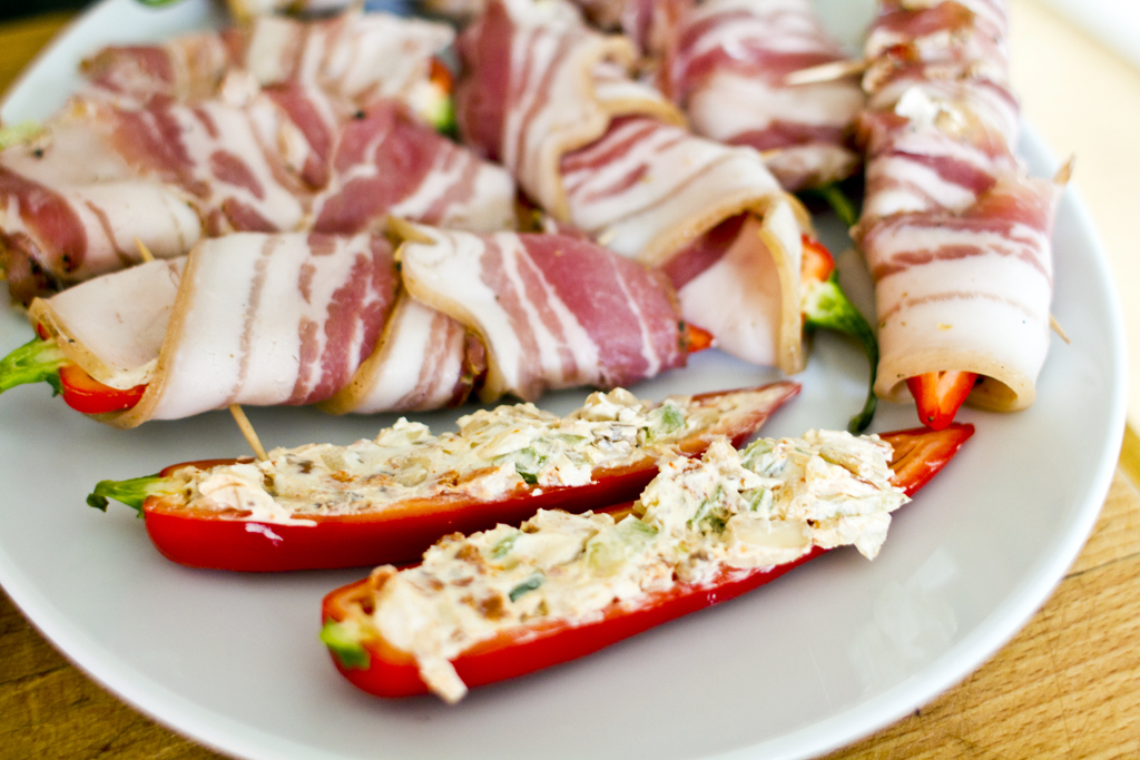 - Wrap each chilli half in bacon or pancetta, use toothpicks to secure the bacon if it doesn’t work out without them